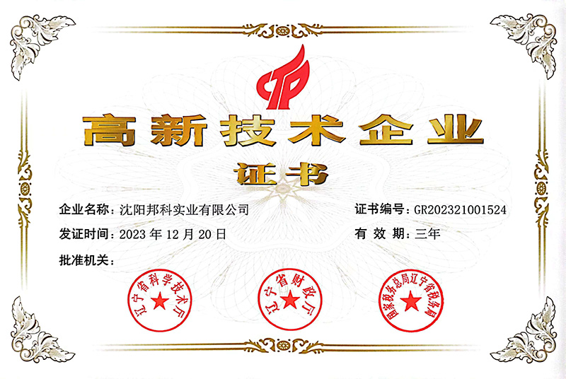 • 04-02熱烈祝賀沈陽邦科實業有限公司榮獲高新技術企業